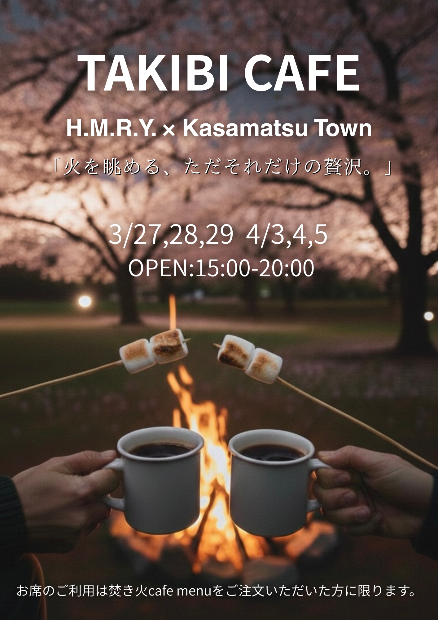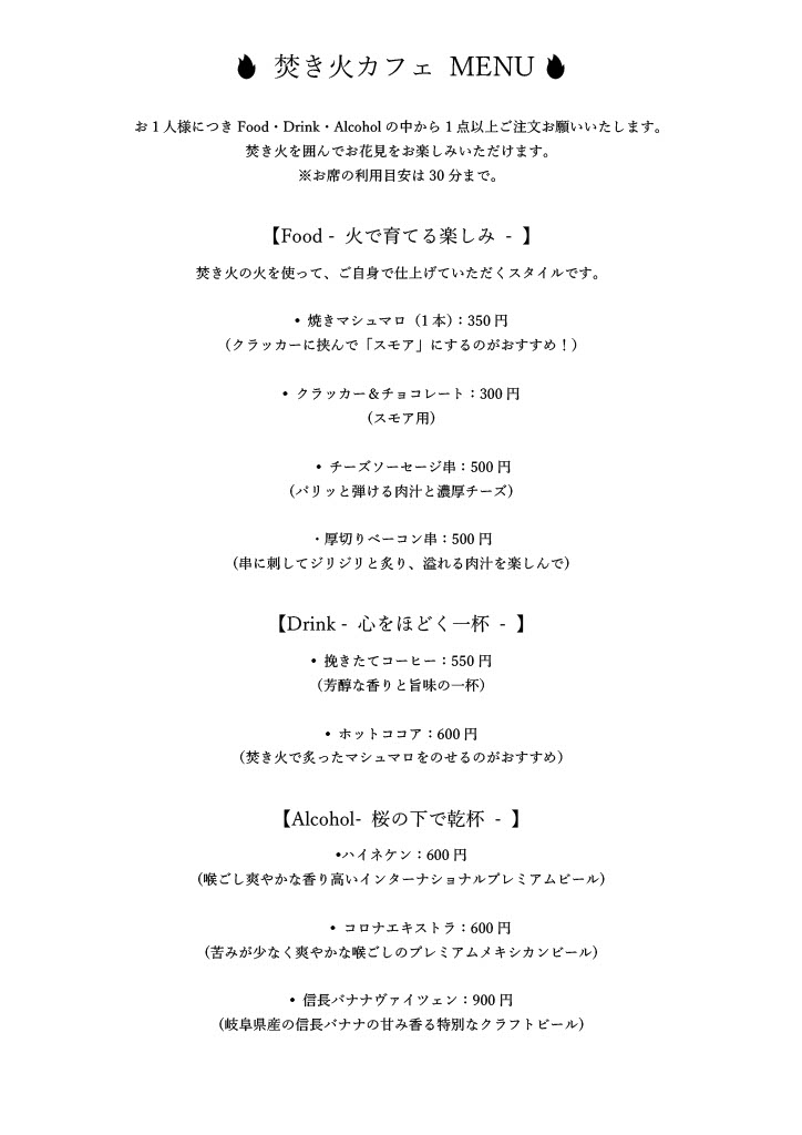 この春、笠松みなと公園にて「TAKIBI CAFE」を開催します!